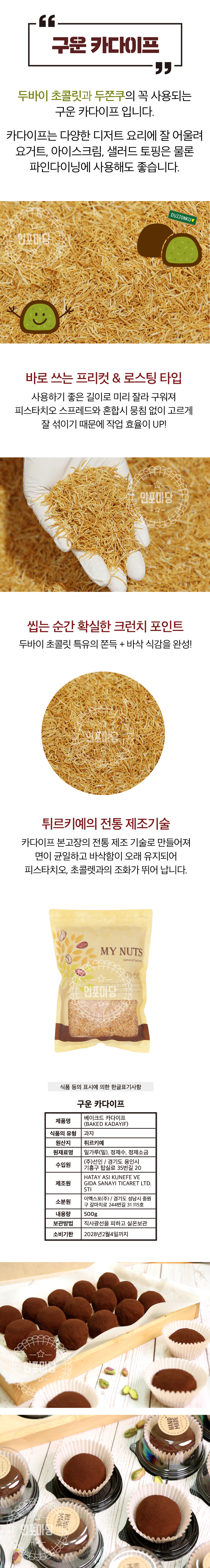 | 카다이프 구매하고싶은데 언제 입고되는지 알수있을까요?[답변] 카다이프 오늘 입고 예정인데 아직 입고가 되고 있지 않아 품절해제를 하지 못했습니다. 입고가 지연이 되어도 내일은 입고 되지 않을까 생각합니다. |