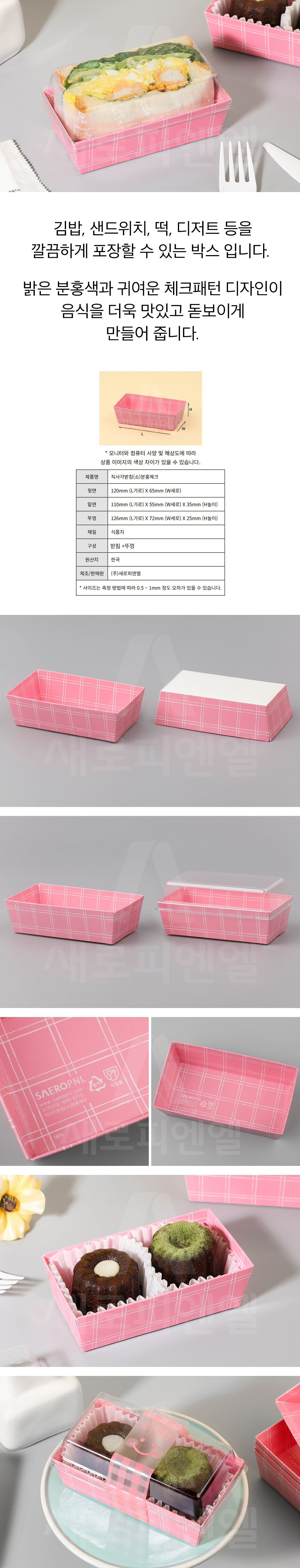 • 직사각받침 분홍체크(소) - 10개 (뚜껑포함)