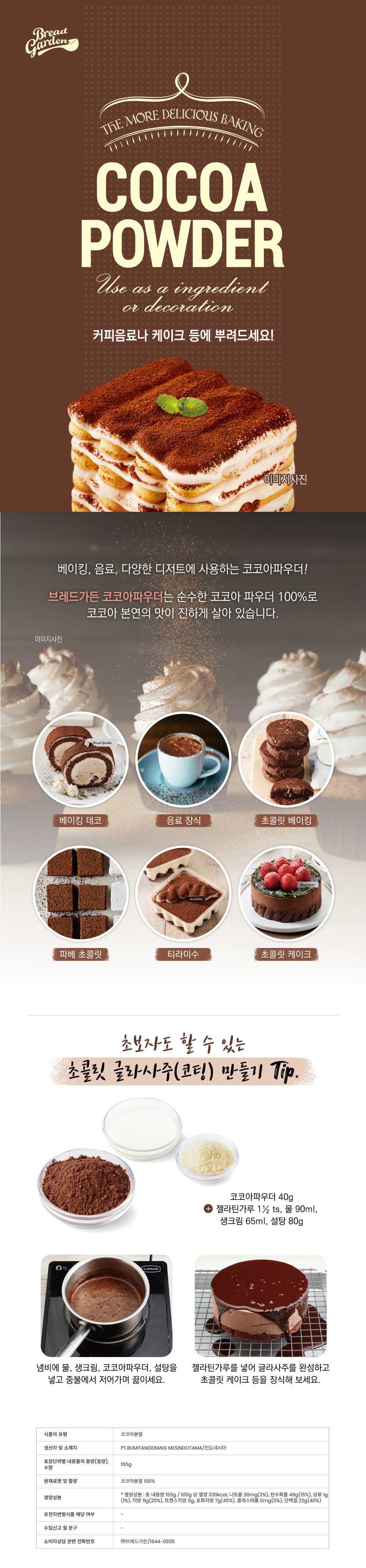 체망이 필요없는 무가당 코코아파우더 (통/155g)