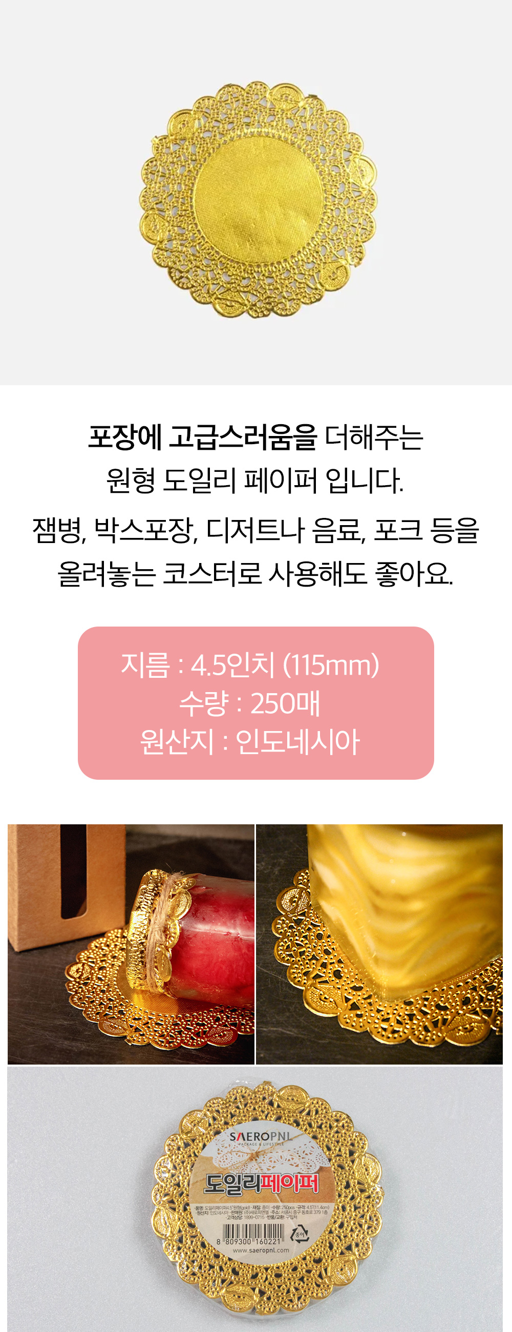 도일리 페이퍼 원형 4.5인치 (골드) 250매