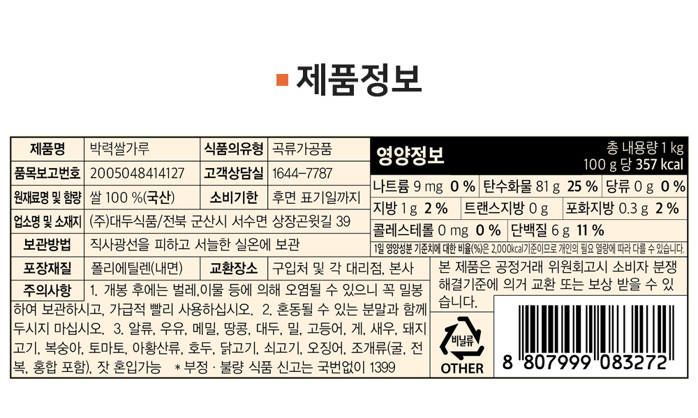 | \100 | 박력분만 사용하다가 디톡스하는 딸위해카스테라에 박력쌀가루 구매해서 잘사용하고있어요~^^ | jos**** | 2024.10.24 (10:01) |
