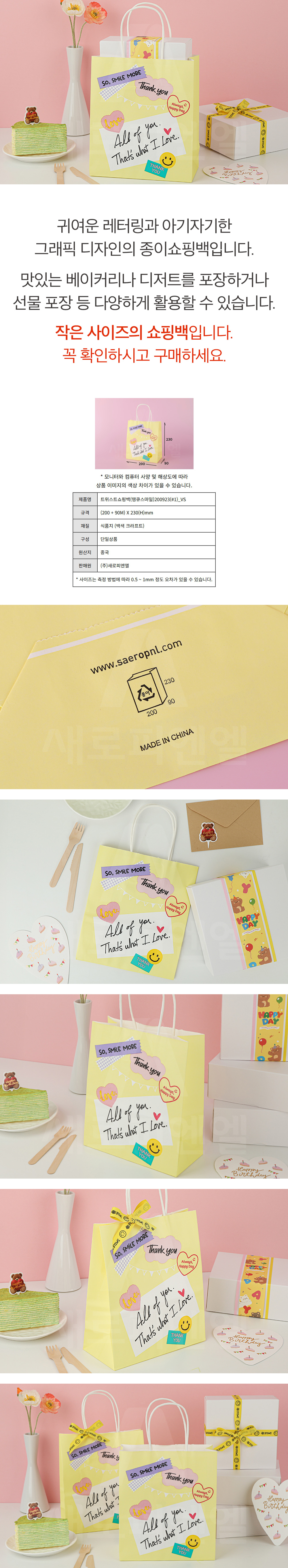 • 트위스트 쇼핑백(땡큐스마일) 5개