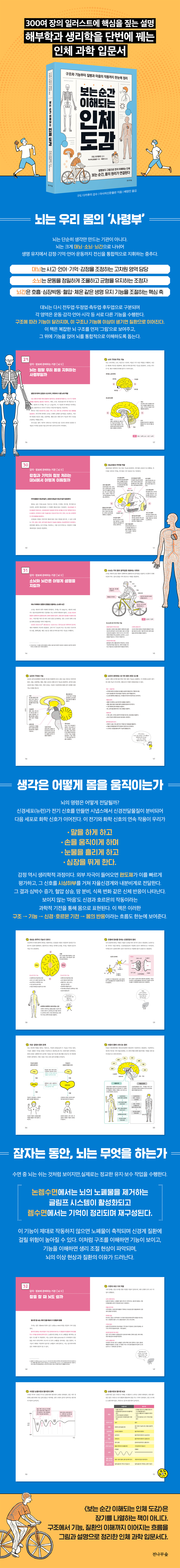 『보는 순간 이해되는 인체 도감』은 이러한 인체의 구조와 작동 원리를 해부학과 생리학의 관점에서 체계적으로 정리한 ‘기본 인체 과학’ 입문서이다. 장기별 지식을 나열하는 데 그치지 않고, 구조 → 기능 → 기전 → 질환으로 이어지는 인과적 흐름을 통해 인체를 통합적으로 이해하도록 돕는다.