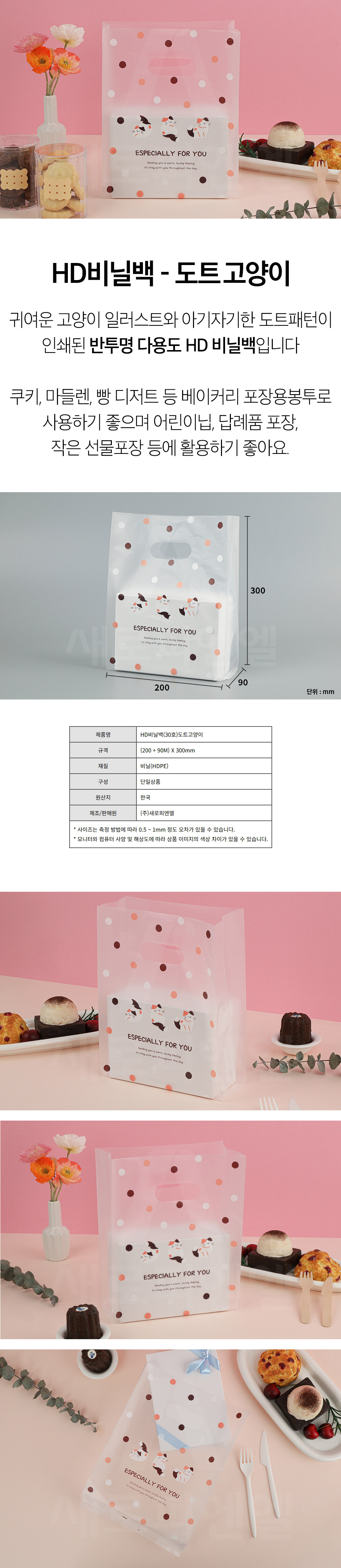 • HD 비닐백 (도트고양이) 30매